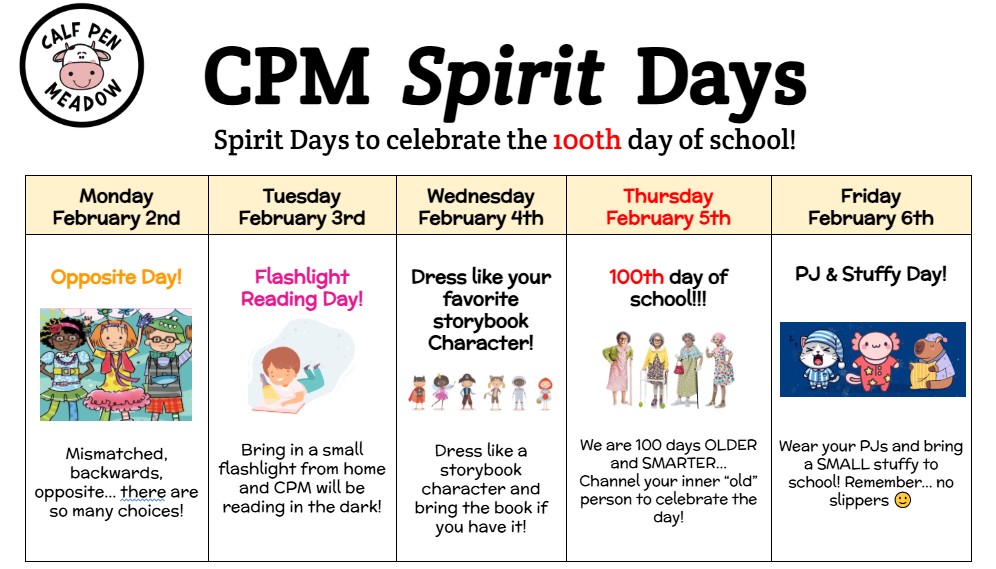 2/2-2/6 - Spirit week - see details below! 2/4 - World Read Aloud Day