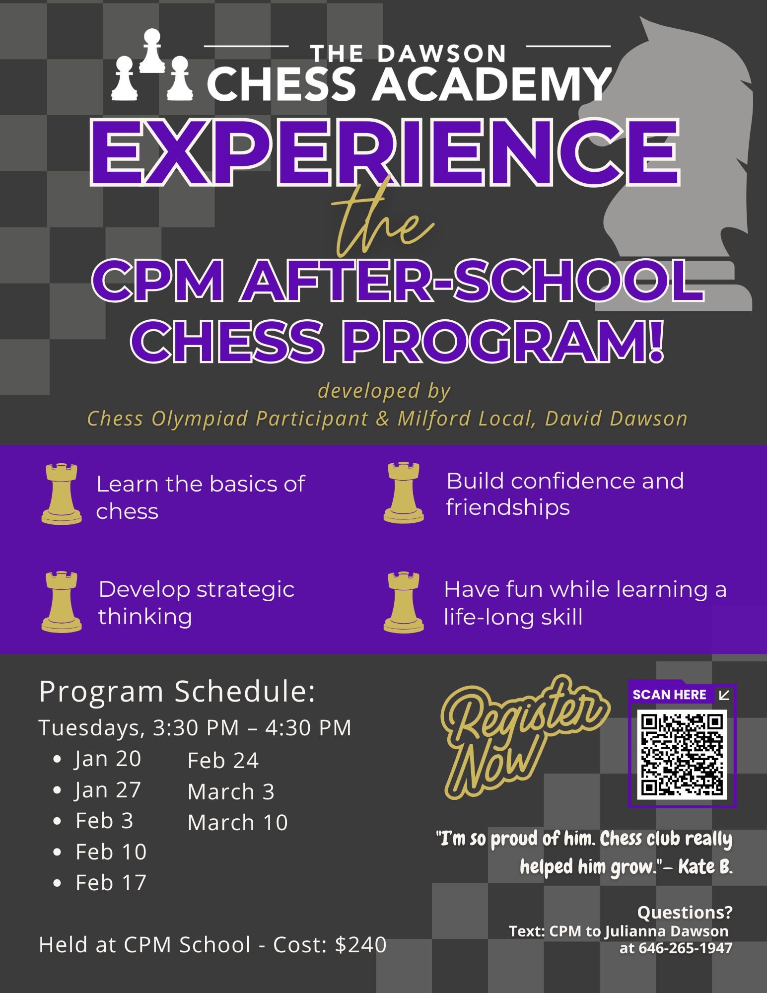 *** Chess w/ Dawson Chess Academy: Tuesdays (1/20 - 3/10): Registration open: please see flyer below