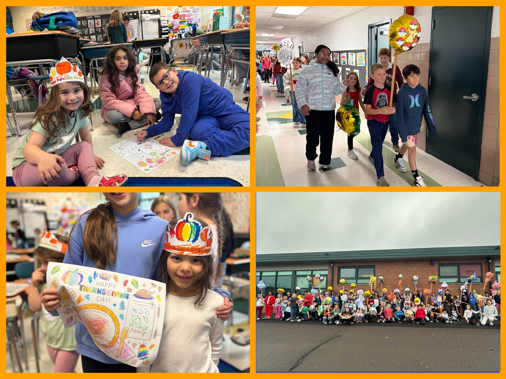 Although it was a short week here at school, our students and staff continued to work hard. Our 2nd and 5th graders paraded around the school to showcase their balloon floats; our 4th graders and kindergartners worked together to make placemats for senior citizens.