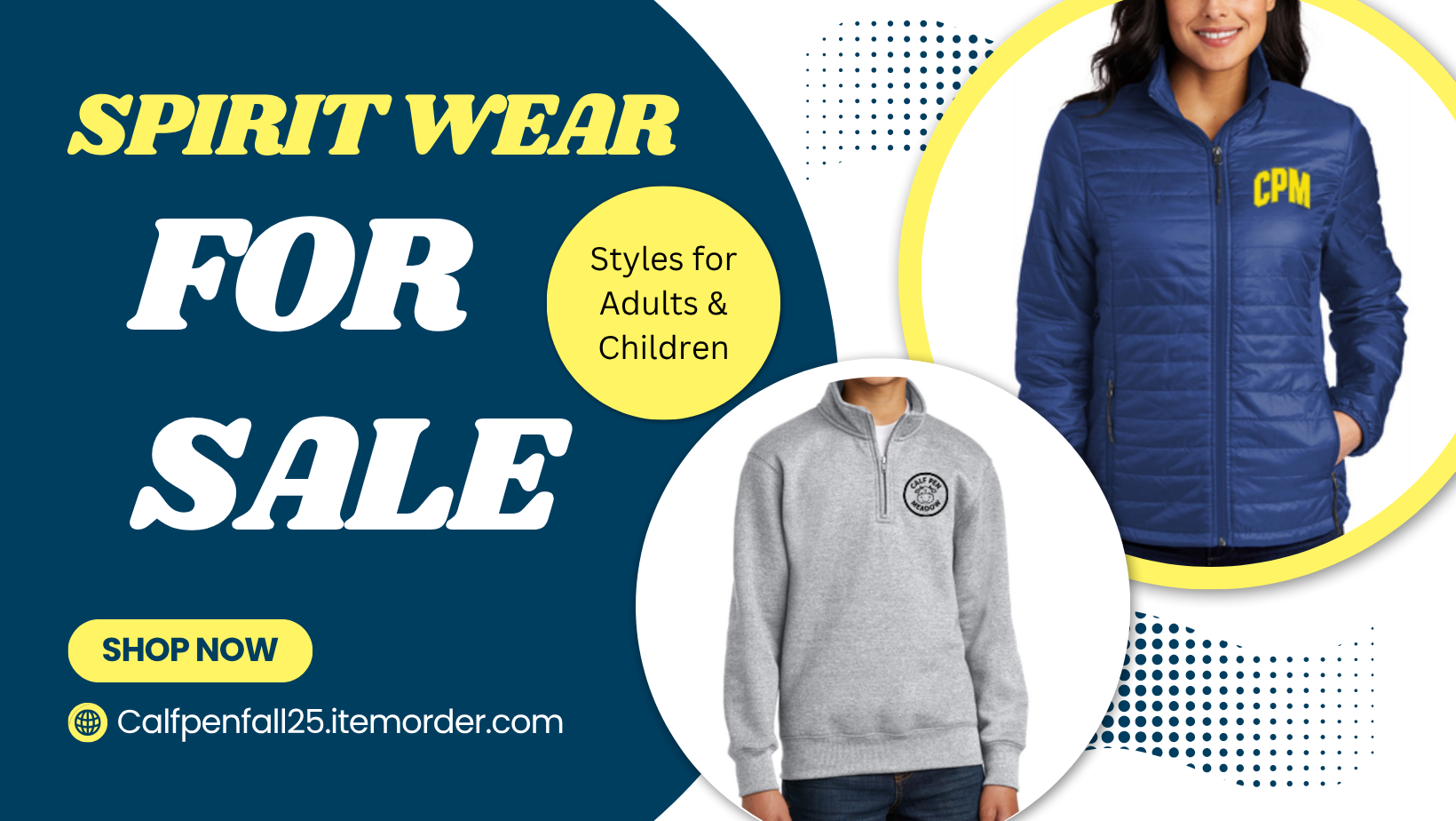 Don’t forget — our Spirit Wear Store is now live! Place your orders by November 16 to show off your Calf Pen pride. The PTA has a number of exciting events coming up, so be sure to read below for details and keep an eye out for our upcoming Holiday Dessert Fundraiser! .
