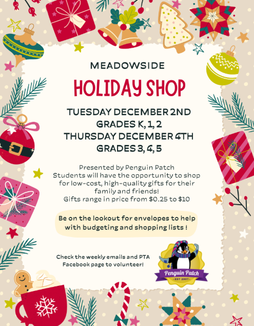 - Tuesday, December 2 & Thursday December 4: PTA sponsored: Holiday Shop