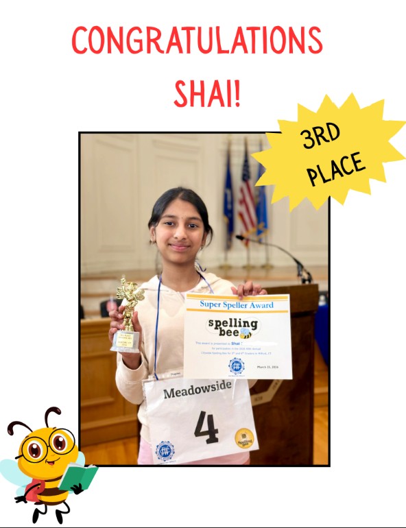 We’d like to extend a big congratulations to Shai for earning 3rd place in the town spelling competition—what an incredible accomplishment! We are so proud of her hard work, dedication, and the way she represented our school community.